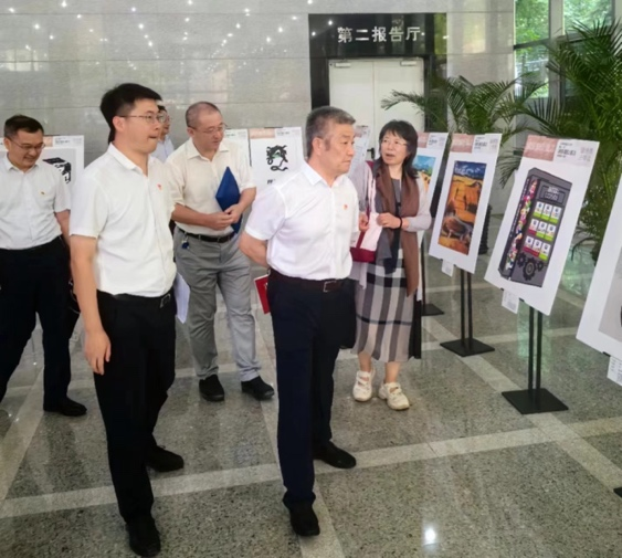 628日下午,赵长禄书记、王云鹏董事长等一行人在新主楼会议中心参观了此次作品展。