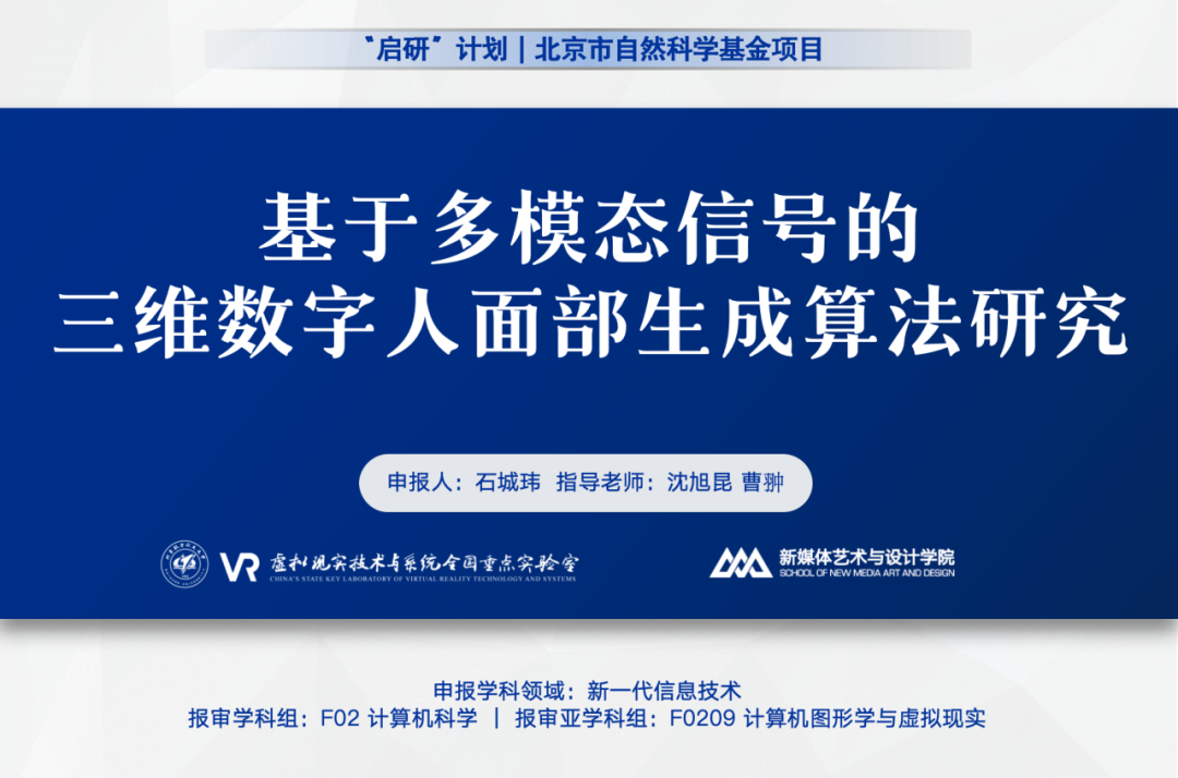 近日,公司yl23455永利沈旭昆教授、曹翀副教授指导的22级本科生石城玮的科研项目“基于多模态信号的三维数字人面部生成算法研究”通过基金委评审,获得了2024年度北京市自然科学基金本科生基础研究项目资助。