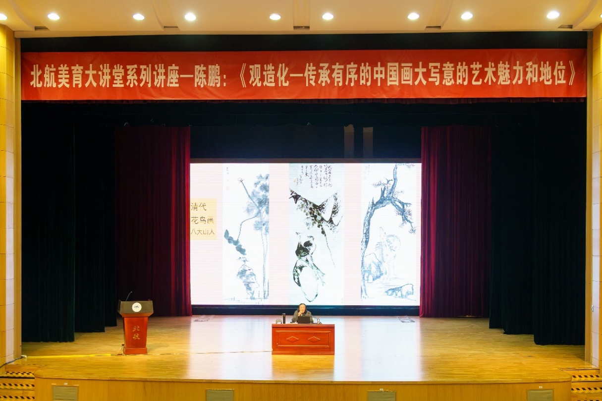 中国国家画院一级美术师陈鹏做客北航美育大讲堂讲述《观造化——传承有序的中国画大写意的艺术魅力和地位》11月12日下午,北航美育中心特邀中国国家画院研究员、一级美术师,大写意花鸟工作室导师陈鹏做客美育大讲堂,为师生带来“观造化——传承有序的中国画大写意的艺术魅力和地位”美育主题讲座。讲座由美育中心副主任宋泽惠主持。陈鹏从中国画的传承历史讲起,系统梳理了从唐代、五代,到宋元、明清及近现代各个时期的代表...[详细]