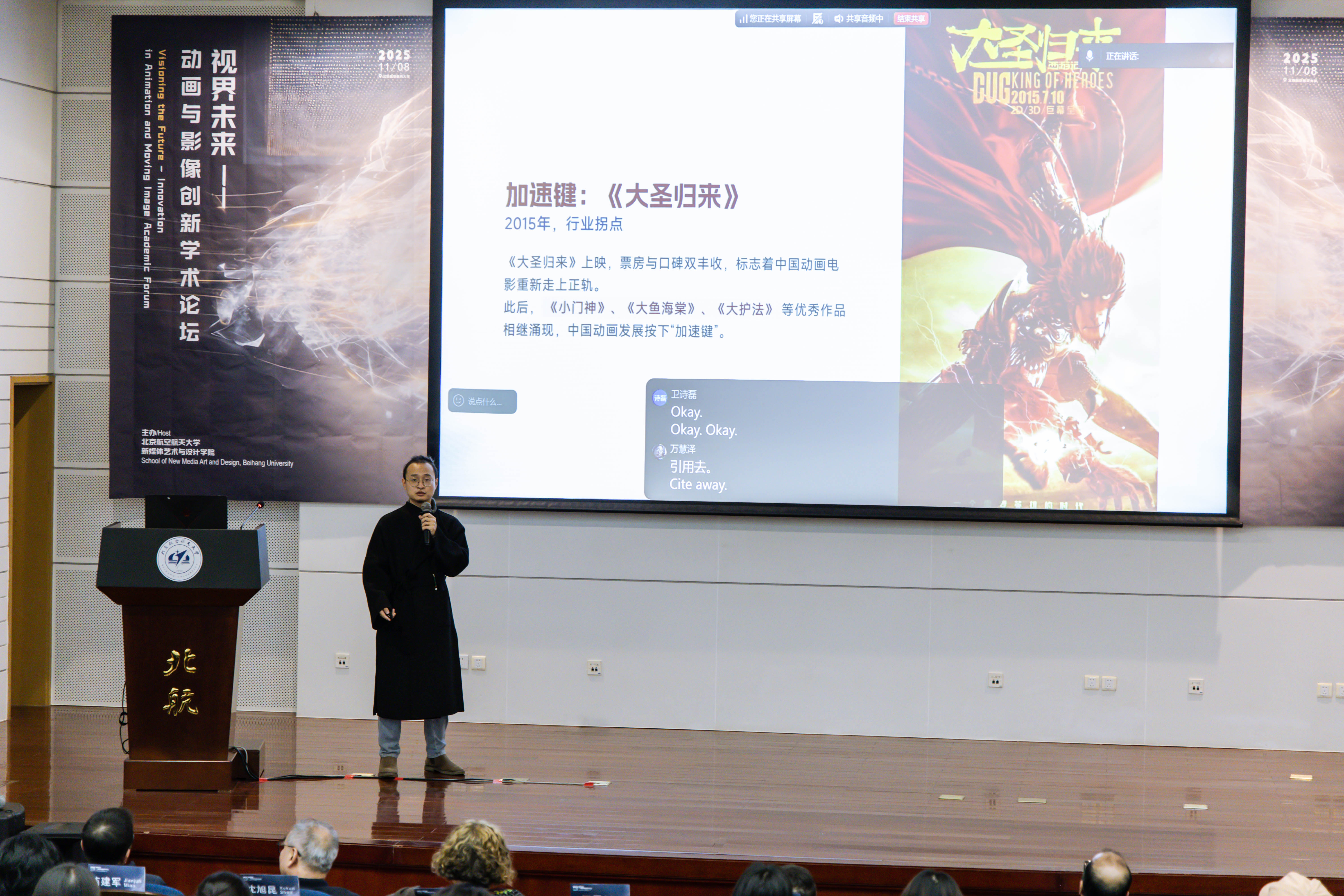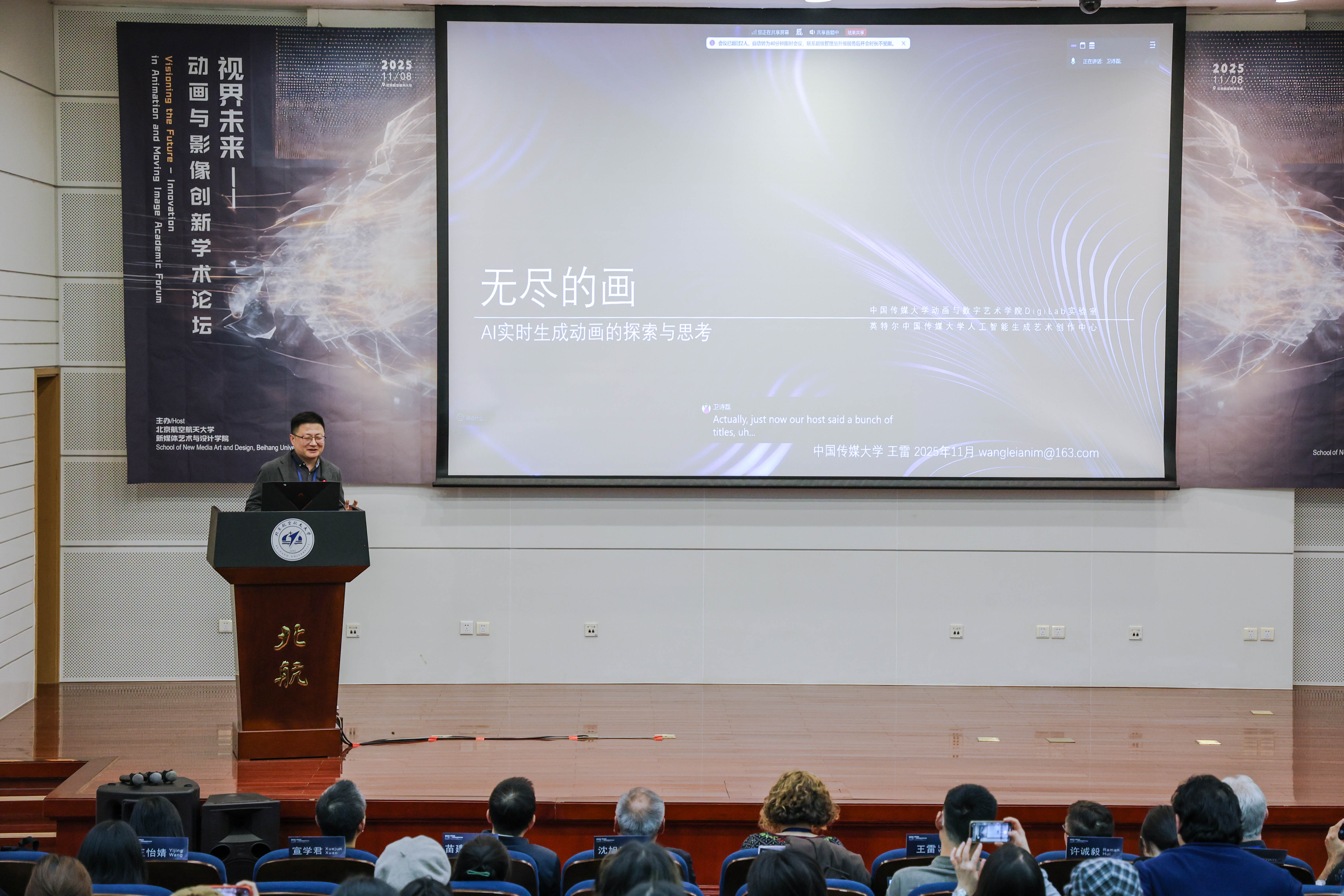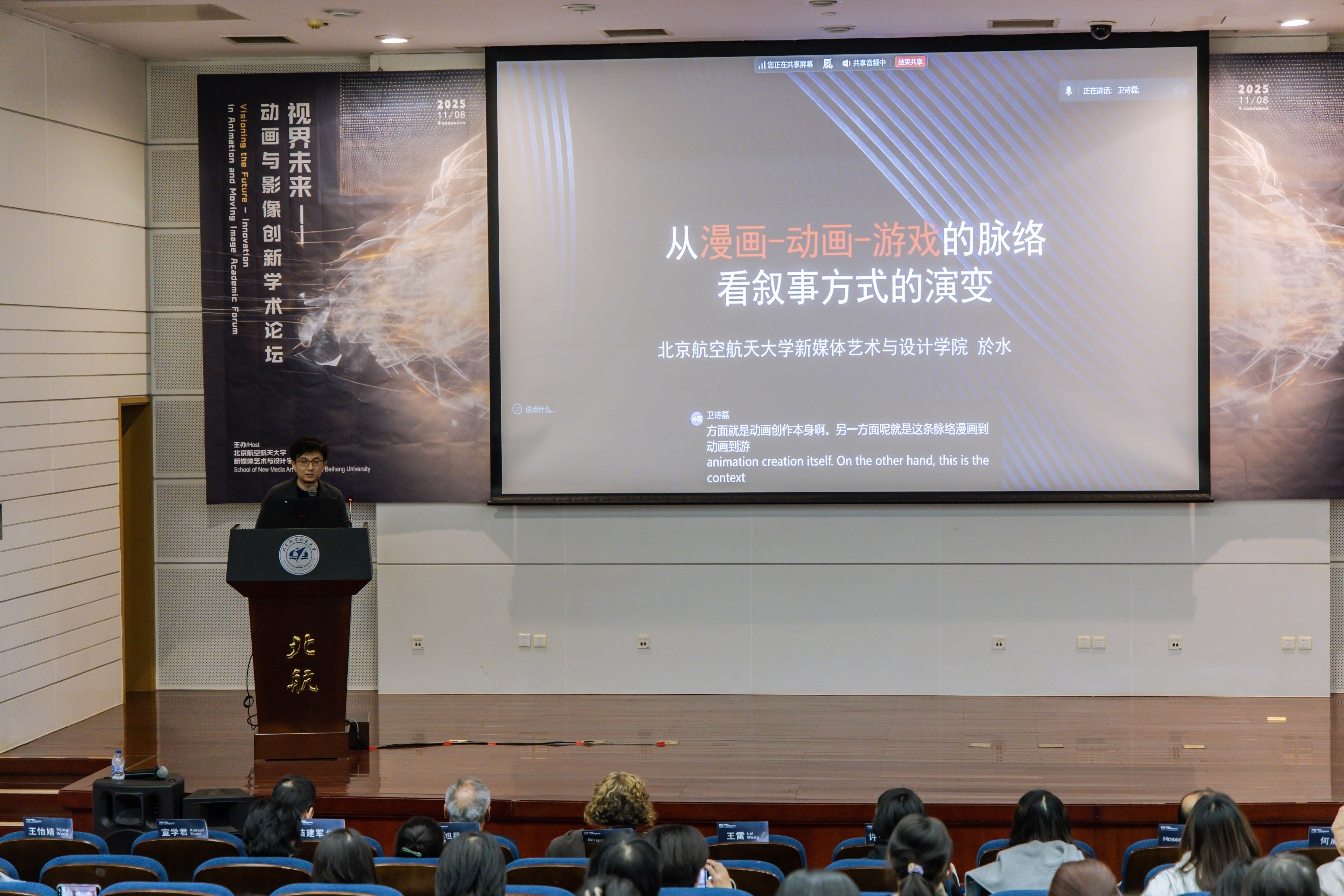 2025年11月8日,由yl23455永利主办的“视界未来——动画与影像创新”学术论坛在北航新主楼第二报告厅成功举办。本次论坛亦是北京市科协“科技馆之城”示范项目“苍穹艺境・寰宇创想 —— 多学科融合的航空航天科技艺术科普示范工程”的重要落地组成部分,为项目“科技+艺术+传播”的科普体系实践提供了学术交流场景。论坛邀请了来自英国创意艺术大学、美国加州艺术公司、香港理工大学、中国传媒大学、中国美术公司、北京师范大学等高校的专家学者,与北航师生共同探讨新时代下的动画创新边界与未来趋势。