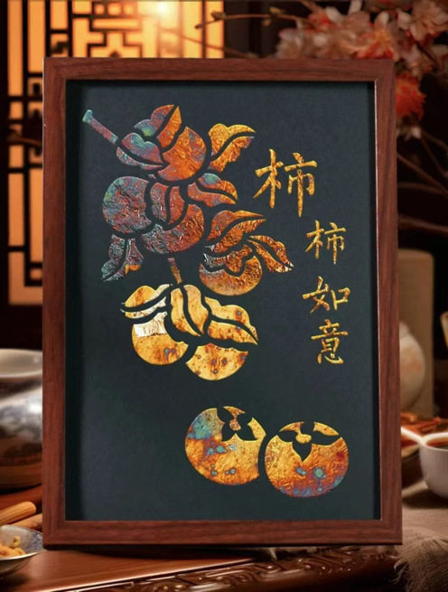 为降低体验门槛、提升参与乐趣,公司工会提前准备了经传统工艺处理的成品铜箔材料,老师们无需参与复杂灼烧环节,可直接专注于创意设计。在拾文思源实践队队员的耐心辅助下,大家充分发挥想象力,精心构思布局、挑选色彩纹理各异的箔片,通过剪裁、拼贴、组合等步骤,将零散的铜箔逐步构筑成心中的图景。活动现场氛围专注而愉悦,老师们时而静心创作,时而交流构图技巧,在指尖翻飞间,一幅幅流光溢彩、独具韵味的烧箔画作品陆续诞生。