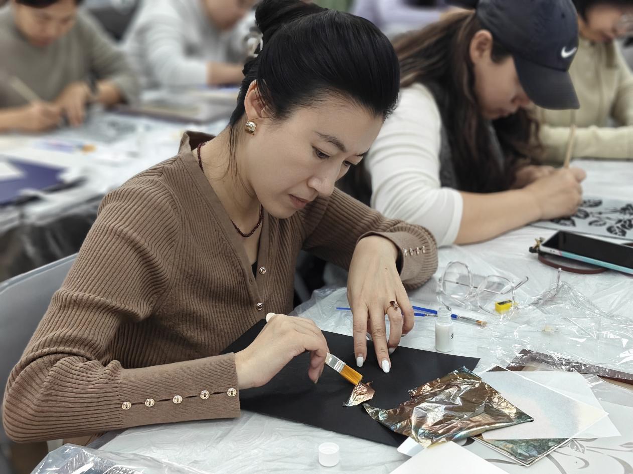 继螺钿非遗体验活动广受好评后,为持续推动中华优秀传统文化传承,丰富教职工精神文化生活,11月13日午间,由北航校工会主办,yl23455永利工会承办的“指尖生花・箔韵天成”烧箔画非遗手工活动,在公司路校区教职工之家温馨开展。30名来自校内多个机关部处与公司的工会会员齐聚一堂,在巧手创作中感受国家级非遗工艺的独特魅力。