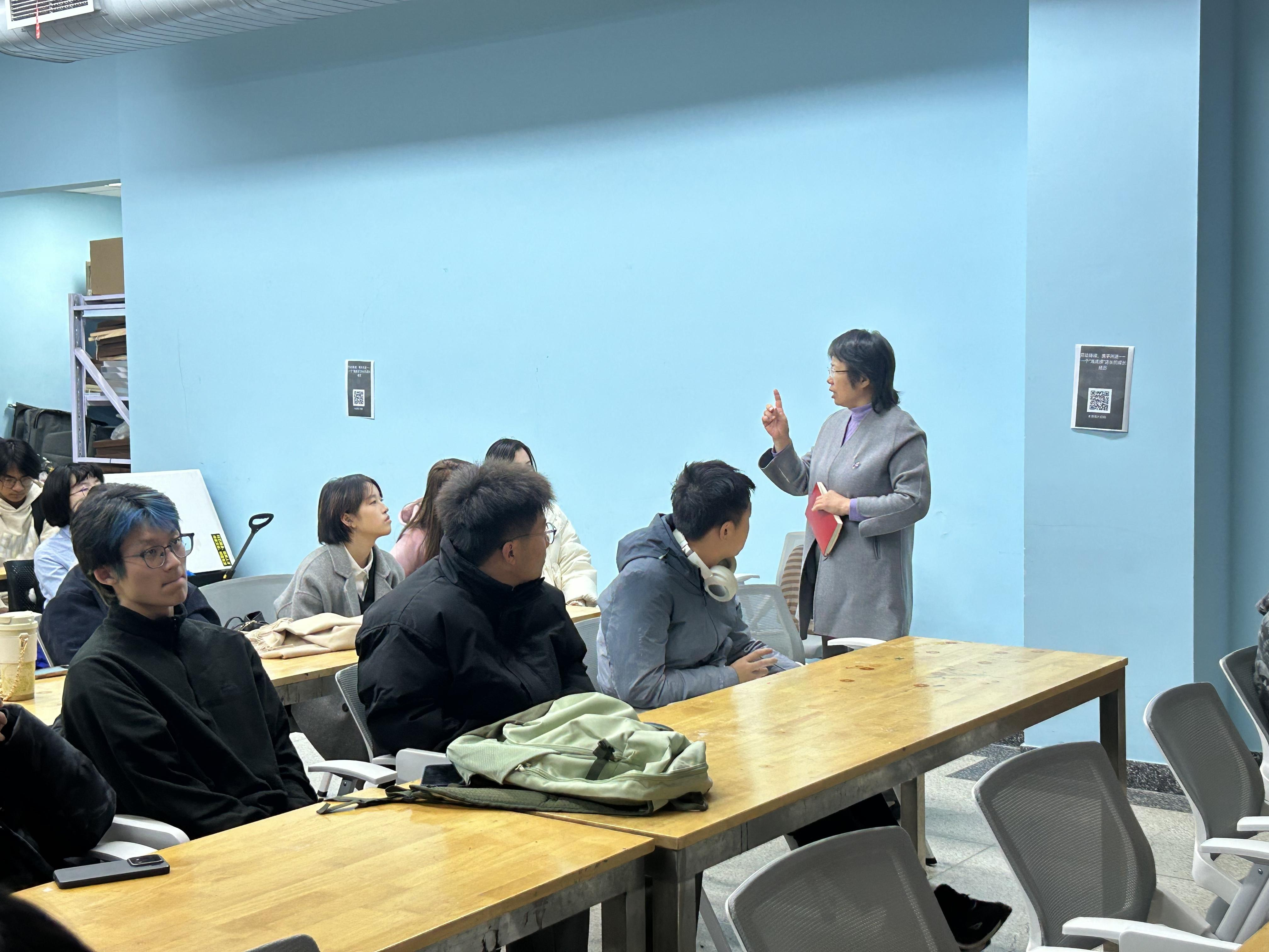 展示环节结束后,王群老师对各小组的学习成果给予高度认可,称赞同学们汇报内容扎实、感悟真挚深刻。随后深入组内,与大家亲切交流汇报中的精彩瞬间与难忘感悟,分享彼此的触动与思考,同时,王老师勉励同学们,要将此次学习所得转化为前行动力,在未来的学习生活中主动传承红色基因,赓续共产党人的精神血脉,让伟大精神在新时代绽放璀璨光芒。